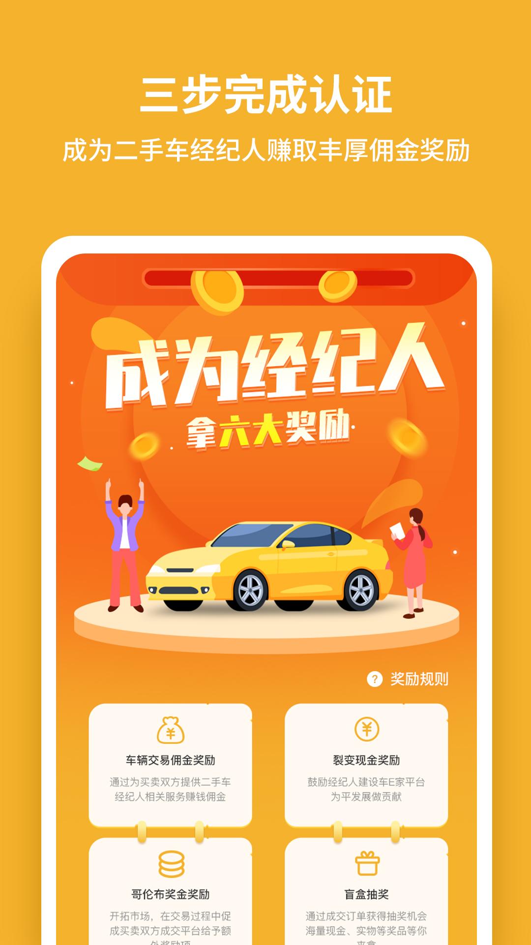三步完成认证,成为二手车经纪人赚取丰厚佣金奖励。