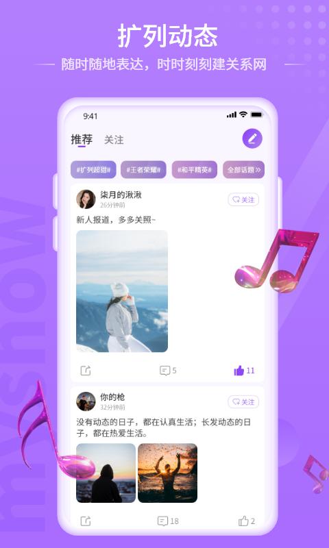 【动态广场】:尽情展示无处释放的内心和表现欲,分享自由自的生活瞬间,认识更多志同道合的好友~