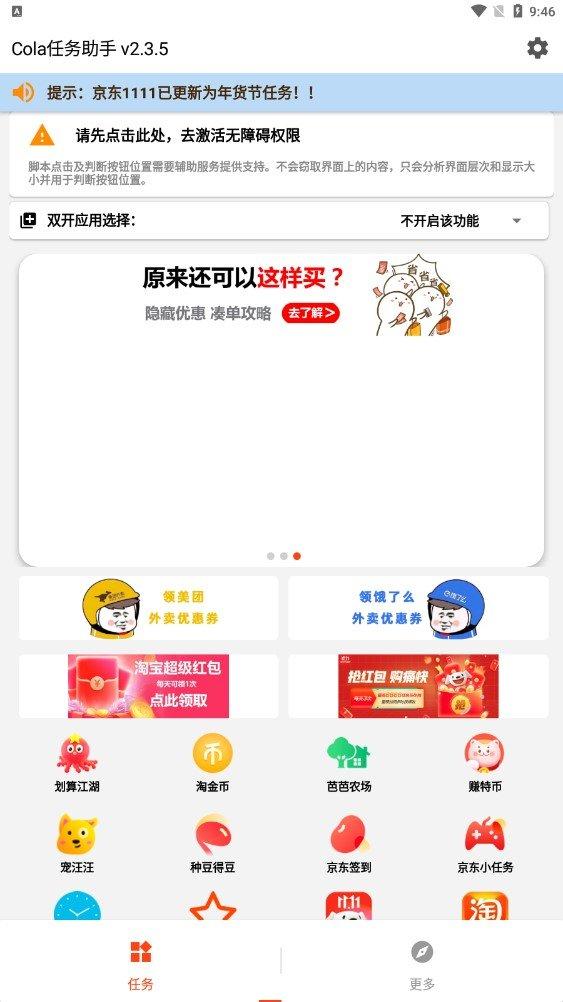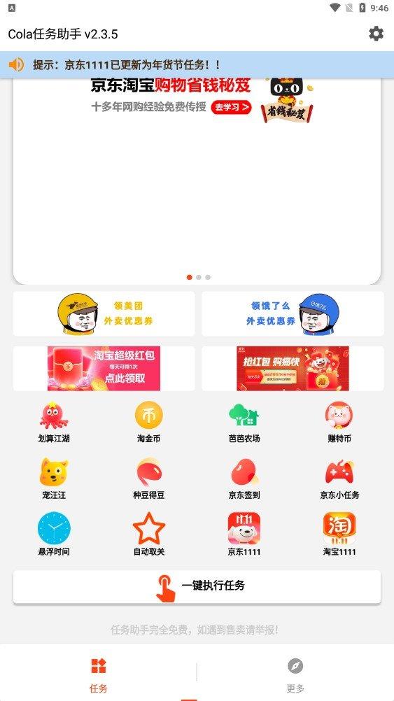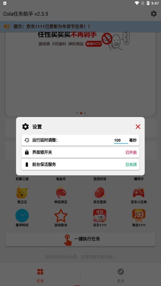 Cola任务助手是为双11活动创建的任务助理。自动完成各大平台的任务,可以轻松享受各种活动奖励。