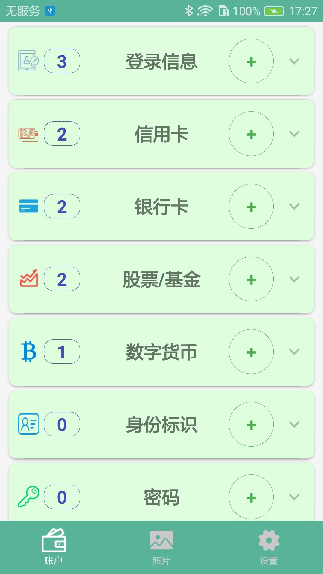 ◆ 存储信息的类别多达数十种:登录信息、信用卡、银行账号、股票、基金、数字货币、邮箱、无线路由、保险、驾驶执照、护照等等。