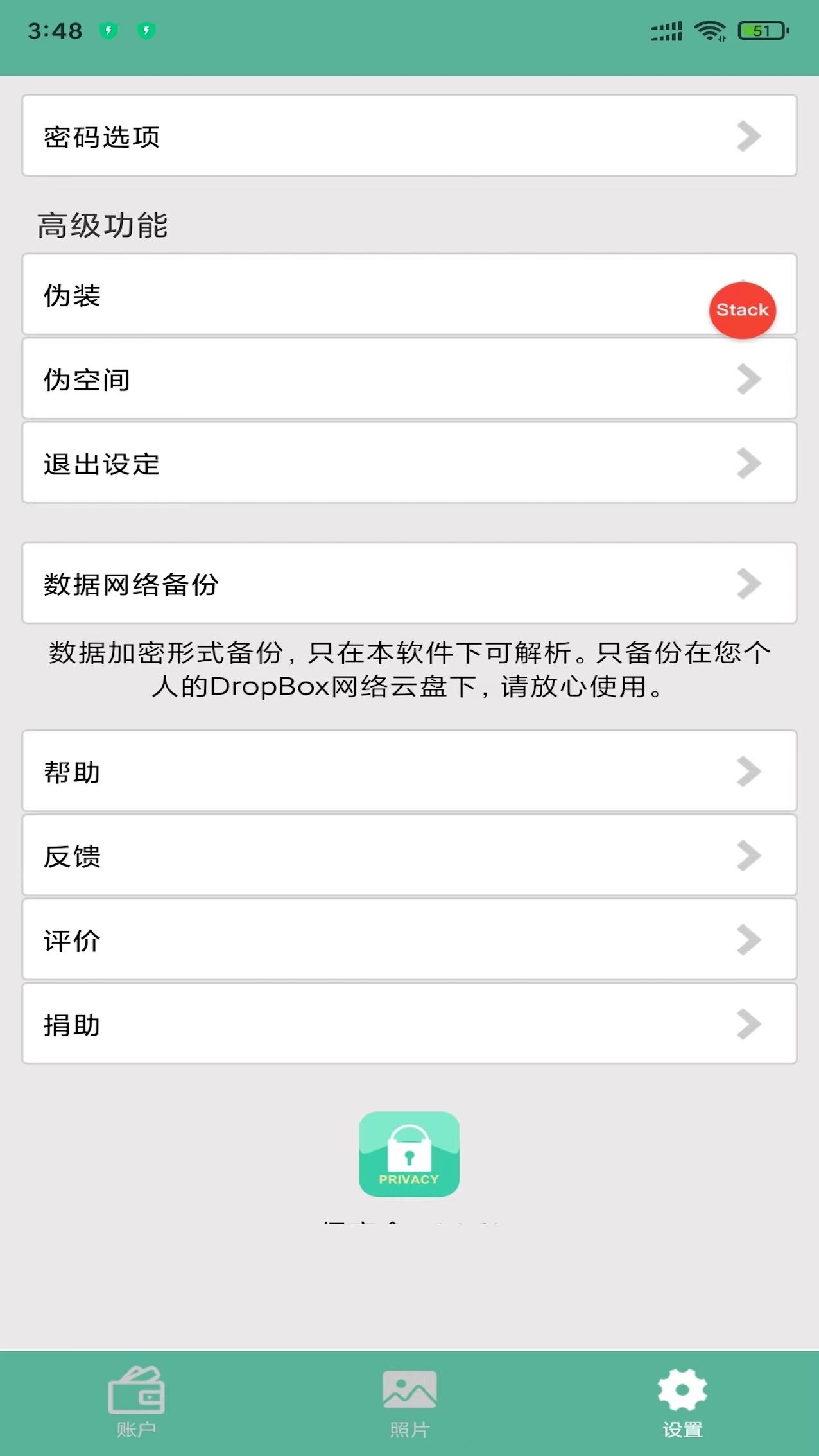 ◆ 可使程序伪装成指南针等其他应用,隐藏真实应用和功能