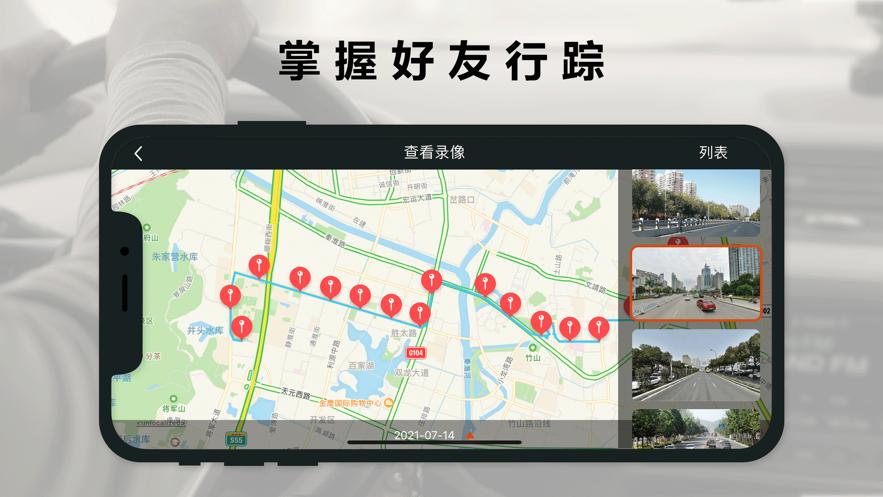 2、云端录制:GPS地理位置和视频录像同步保存到云端,再也不用担心手机损坏或内存不够;