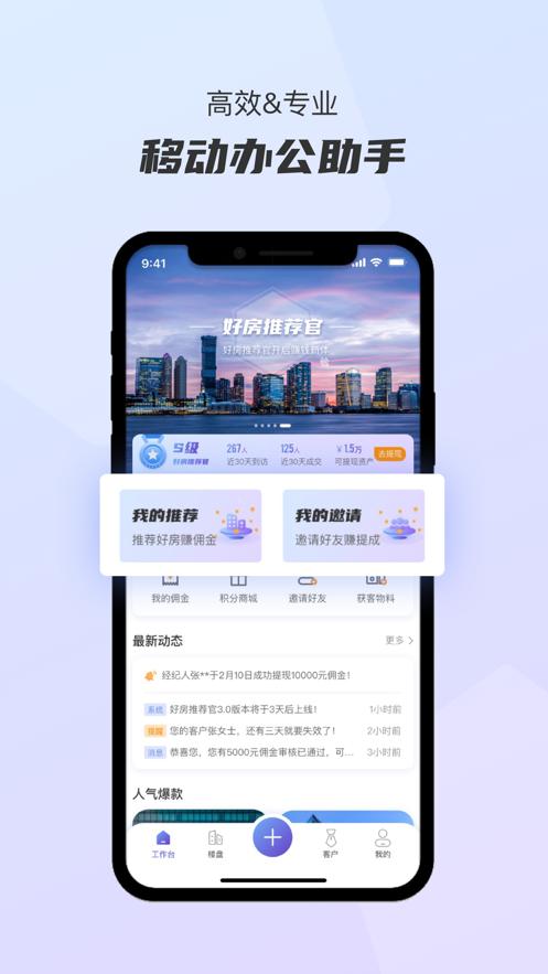 好房推荐官app是一款全民经纪人平台,平台拥有搜索查找,快速推介,客户追踪等等功能服务,可以帮助更好的成交赚佣,觉得不错的朋友欢迎前来下载使用。