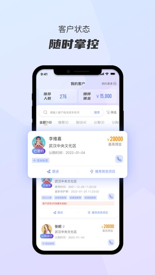 [客户追踪] 一经推介, 客户状态随时查看, 客户动向随时追踪;