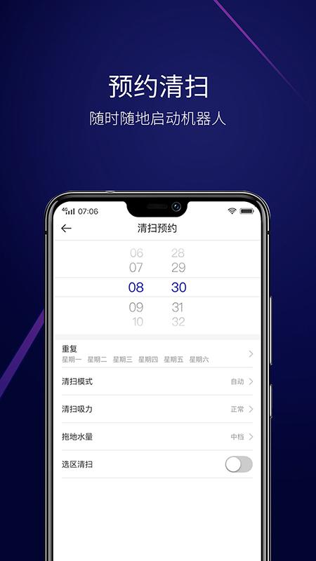【定时预约】预约一周内清扫任务,准时开启清扫;