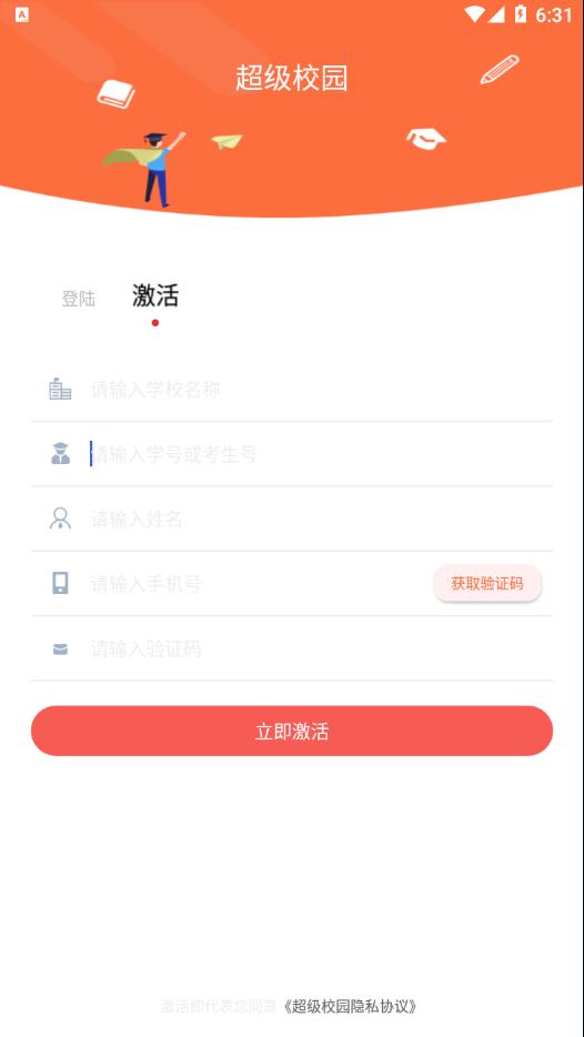激活校园账号:输入学号或考生号、姓名、手机号进行验证,验证结束后点击“立即激活”按钮