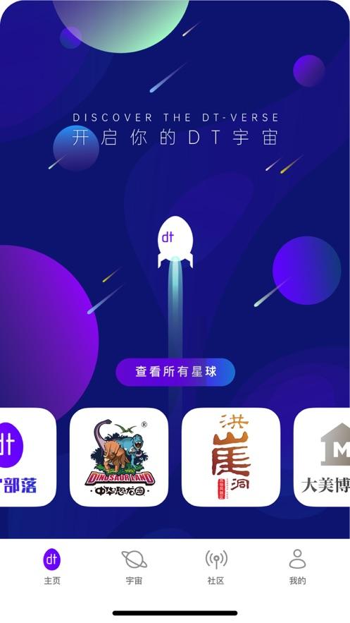 DT宇宙是国内首款区块链技术支持下的文旅数字创意内容社区APP,集购买、收藏、展示、转让等功能为一体,拥有NFT盲盒、NFT藏品、DT平行宇宙、DT漫画和DT社圈五大产品, 将应用于全国各大景区景点、博物馆、城市文娱商综合体、旅游目的地等八大文旅场景,为用户提供全新文旅体验和消费。