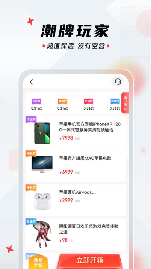 潮牌玩家是一款为盲盒爱好者开发的可以随时随地在线抽盲盒的APP