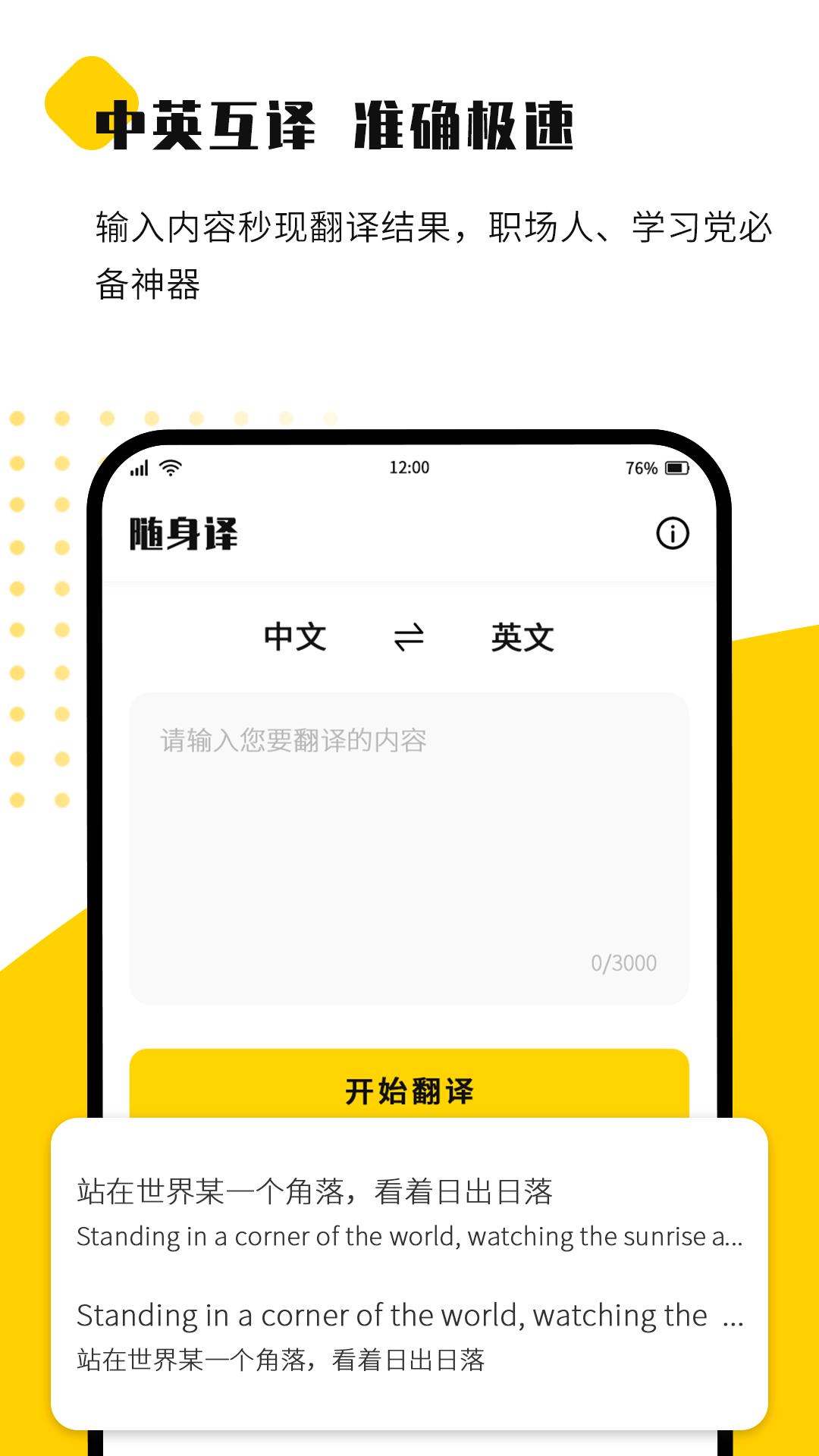 随身译效率工具类软件,方便用户一键进行中英互译,用于生活、工作中的中英文字翻译。