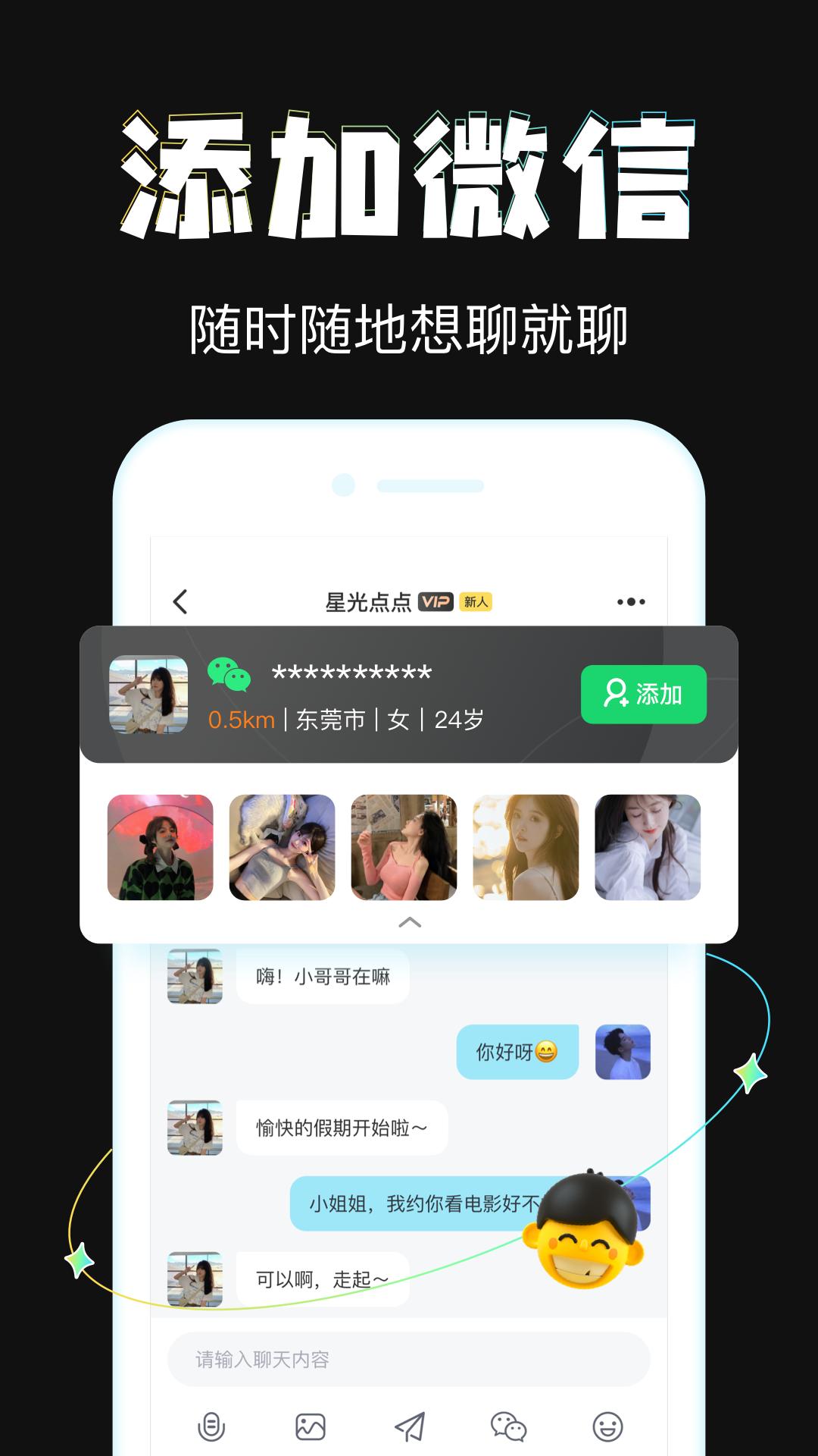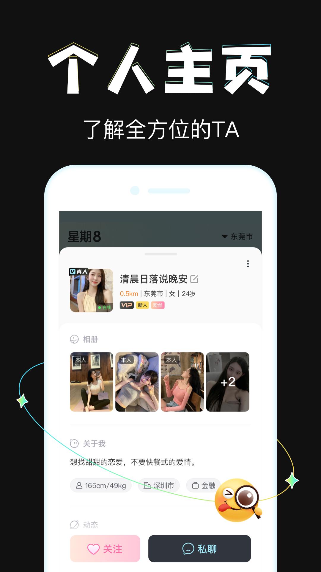 优先推荐附近高品质、高颜值用户,不用左滑右滑,喜欢TA就直接开聊
