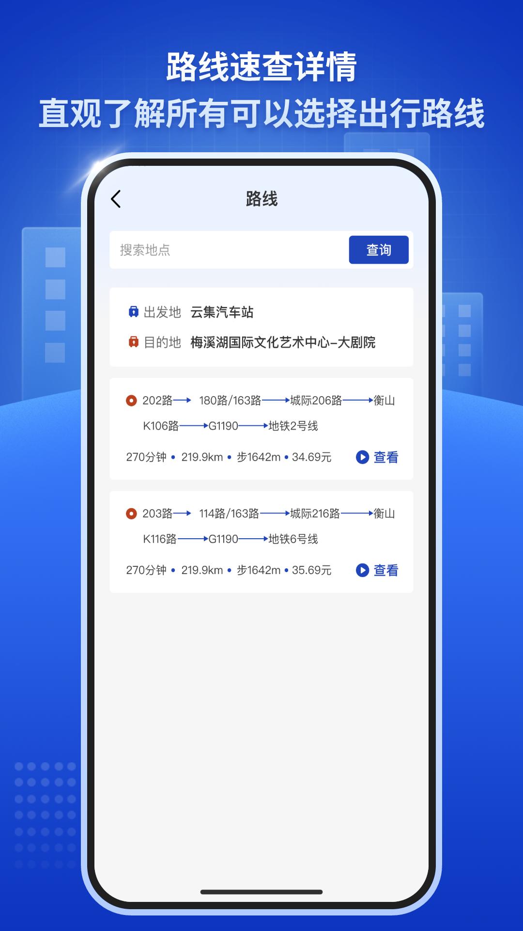 公交速查通app官网版是一款可以查询公交路线的应用软件,软件为用户提供了公交出行的详细站点信息,这里可以快速查询公交路线,便捷的掌握,了解相关的公交信息,查看清晰的查询结果,对公交站点的详情也可以全面查看,轻松掌握,规划出行方式就可以轻松乘坐公交出行了。