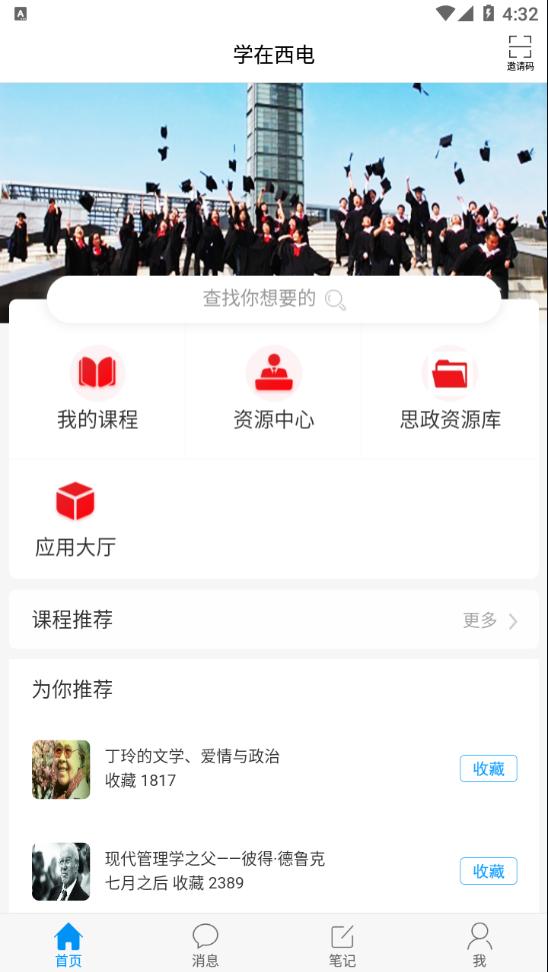 学在西电app是专为西安电子科技大学师生制作。软件拥有我的课程,资源中心,思政资源库,应用大厅,消息,笔记等等功能内容,需要的朋友欢迎前来下载使用。