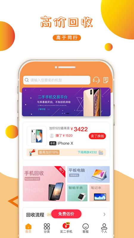 派派回收app是一款十分好用的回收平台,本机回收一键估价,全国顺丰上门回收手机,收货当天质检,当天打款,十分方便快捷,有需要的用户可以来下载