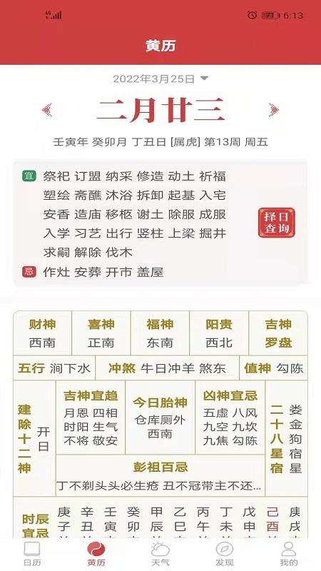 【万年历黄历】万年历黄历:拥有完整的老黄历信息,详细罗列出农历节气变化,每日宜忌,吉神凶神,天干五行,同时显示公历、农历和干支历等多套历法;