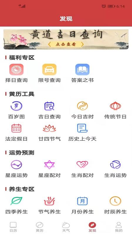 ①日历:黄历宜忌、节日节气、吉日查询、历史查询;