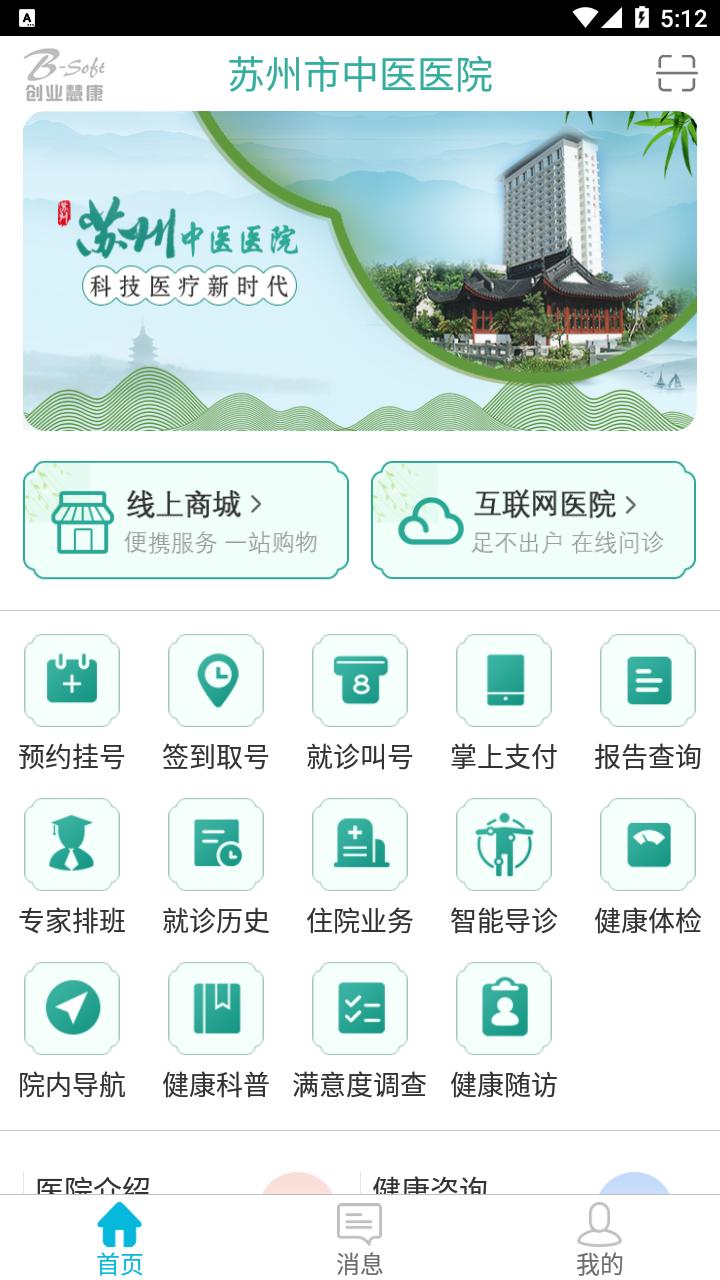 苏州市中医医院智慧医院App可以随时随地享受“预约挂号、签到取号、排队叫号、掌上支付、报告查询、专家排班、就诊历史、住院业务”等业务功能。