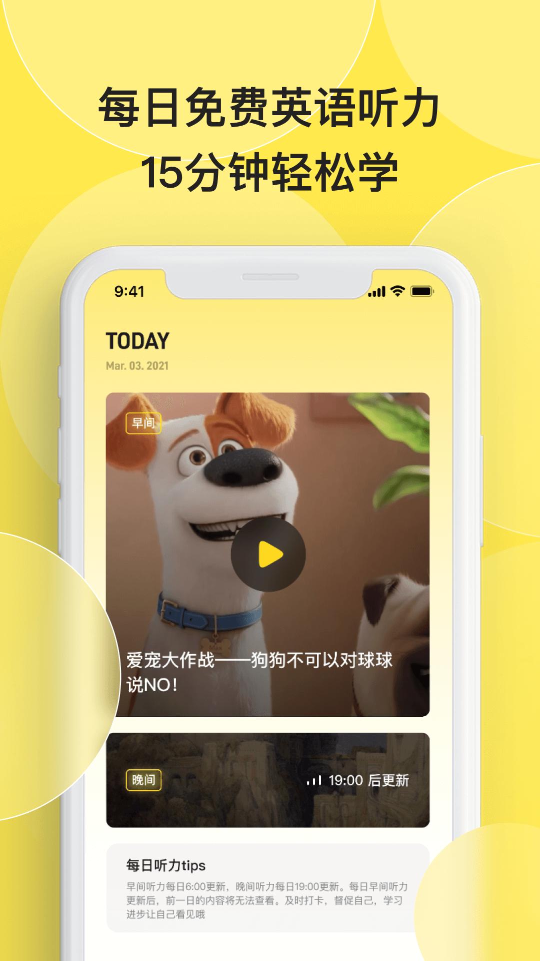 百词斩荣誉出品,免费英语听力学习app;每天一刻钟,随时随地学听力