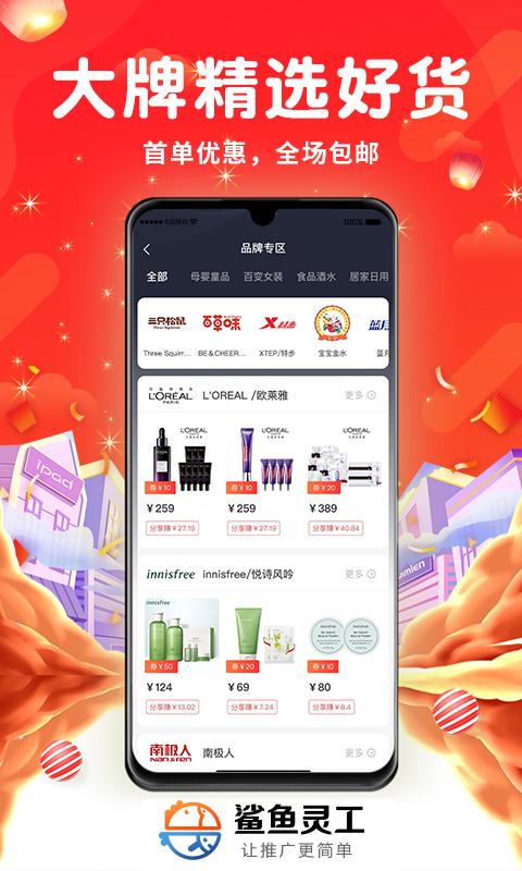 鲨鱼灵工app是一款由上海弘跃网络科技有限公司开发的购物软件,软件内拥有非常多大牌商品活动,是更新最新活动让用户领取优惠券领不停,帮助用户购物更省钱,品质正品保障购买更放心。