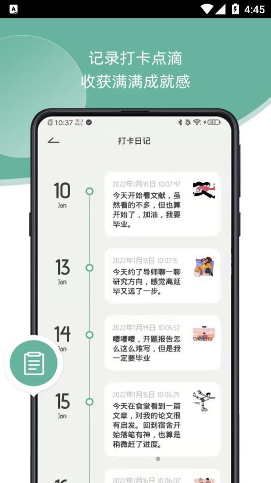 随时看打卡记录,图文并茂,记录你所有的点滴。