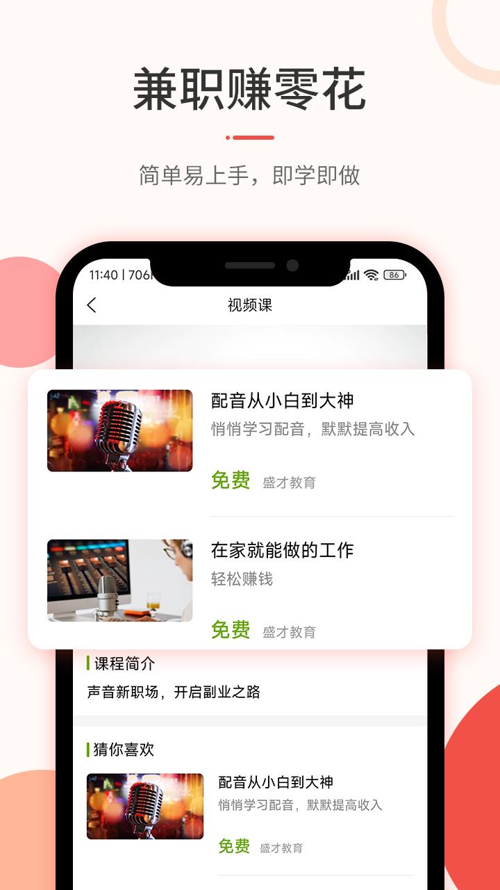 1、新增学配音免费视频课程,专业老师带你从零开始,足不出户就能学,小白快速成为大神。
