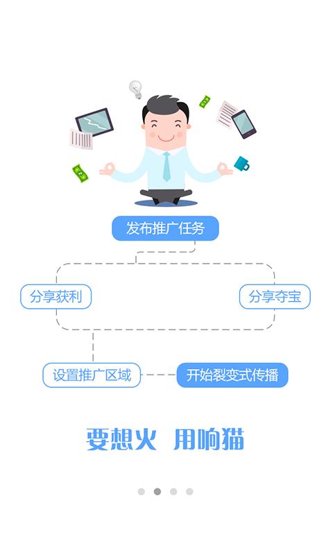 “响猫”信息互助分享平台依托社交软件庞大的用户数量,超高的用户粘性以及符合用户信息获取习惯为基础,能显著降低广告信息投放者的宣传成本、提高有效曝光量,另外信息分享者在传播信息的同时可以获取高额奖励,真正实现全民参与、互利互助的信息推广模式。我们的目标是做人人都需要、人人都获利的,低成本、高效率的信息互助分享平台。