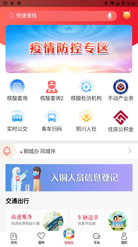 铜城办app下载是专为铜川制作的城市服务平台,平台拥有资讯,服务,铜城办,互动等板块,可以帮助更好的引导及服务铜川,需要的朋友欢迎前来下载使用。