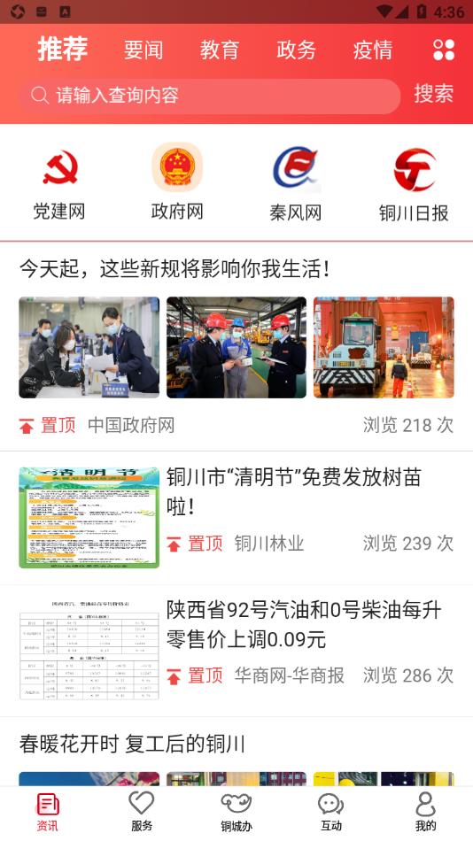 1、资讯服务。对接各级政府门户网站,提供最新资讯。