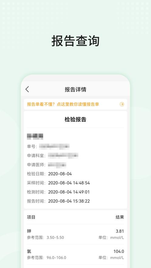 3. 查询报告:可即时地查询就诊人的检查化验报告。