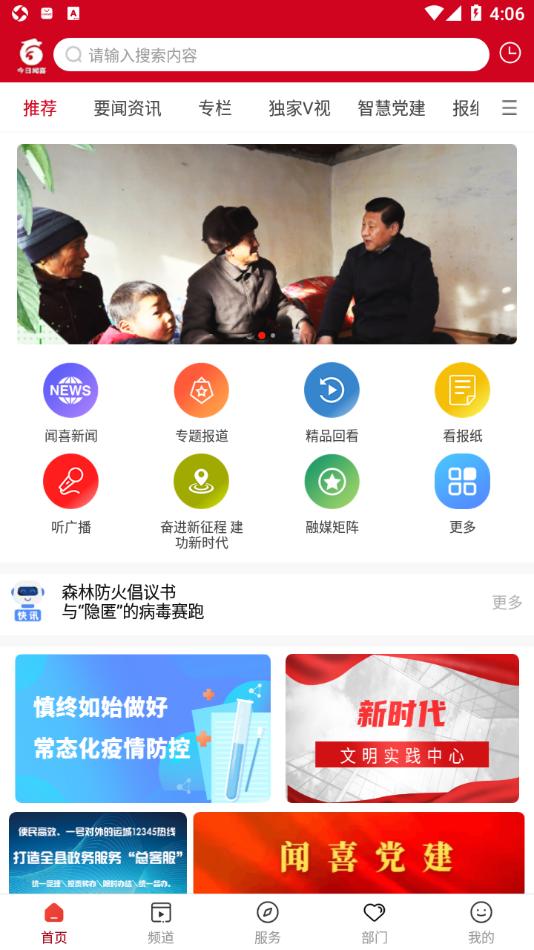 今日闻喜app是专为闻喜县制作的融媒体移动平台,平台拥有新闻,频道,服务,部门等等功能板块,可以帮助更好的引导及服务闻喜。