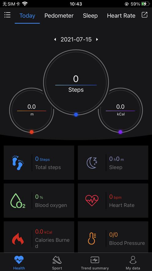 并且将手表中的健康信息如每日步数,消耗卡路里、心率、血压等推送至APP中保存记录;