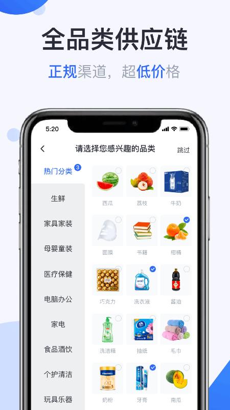 供给云app为商户提供的了完整的供应链操作功能,支持快速上架管理商品,选择模板活动,模板优惠券,对商户的店铺快速装修。