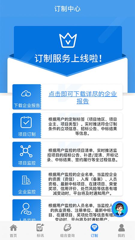 4、智能定制,同步提醒:每天通过手机接收您定制的招标采购信息和项目信息更新提醒,可以随时随地修改调整您的信息定制需求。
