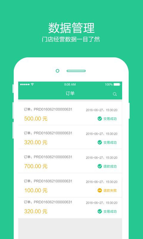 3、数据查看:包括今日收入、今日订单量、昨日收入、本月收入;