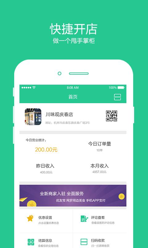 优友宝商户版最新版本是一款针对商户打造的个人记账收款工具,它主要提供商家信息实时修改,订单查询、账户管理等功能,为用户提供便捷、安全的收款方式,感兴趣的话可以来下载试试看