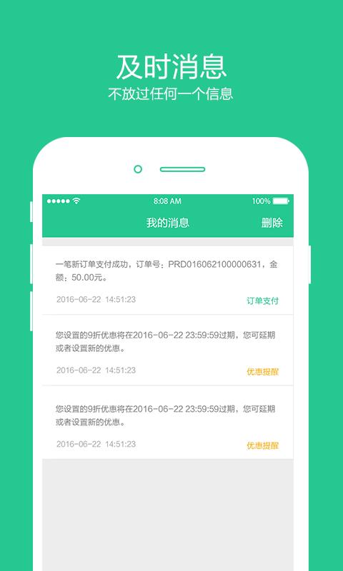 4、信息查看:包括消息、订单、评论、结算、商家二维码。