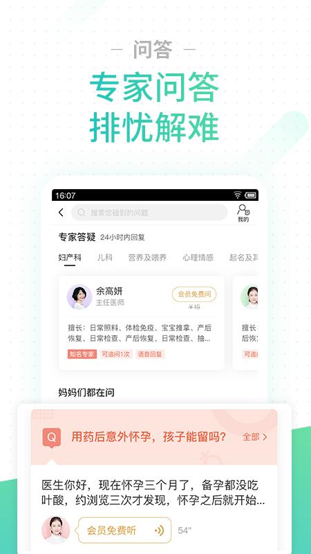【孕育百科】提供孕育必知的孕育指南、胎儿3D图、胎教音乐、孕期营养食谱、产后恢复、母乳喂养;宝宝感冒、宝宝发烧、宝宝腹泻、宝宝洗澡、宝宝睡眠等280个育儿视频讲;百名专家在线解答孕育疑问,轻轻松松陪伴宝宝健康成长;