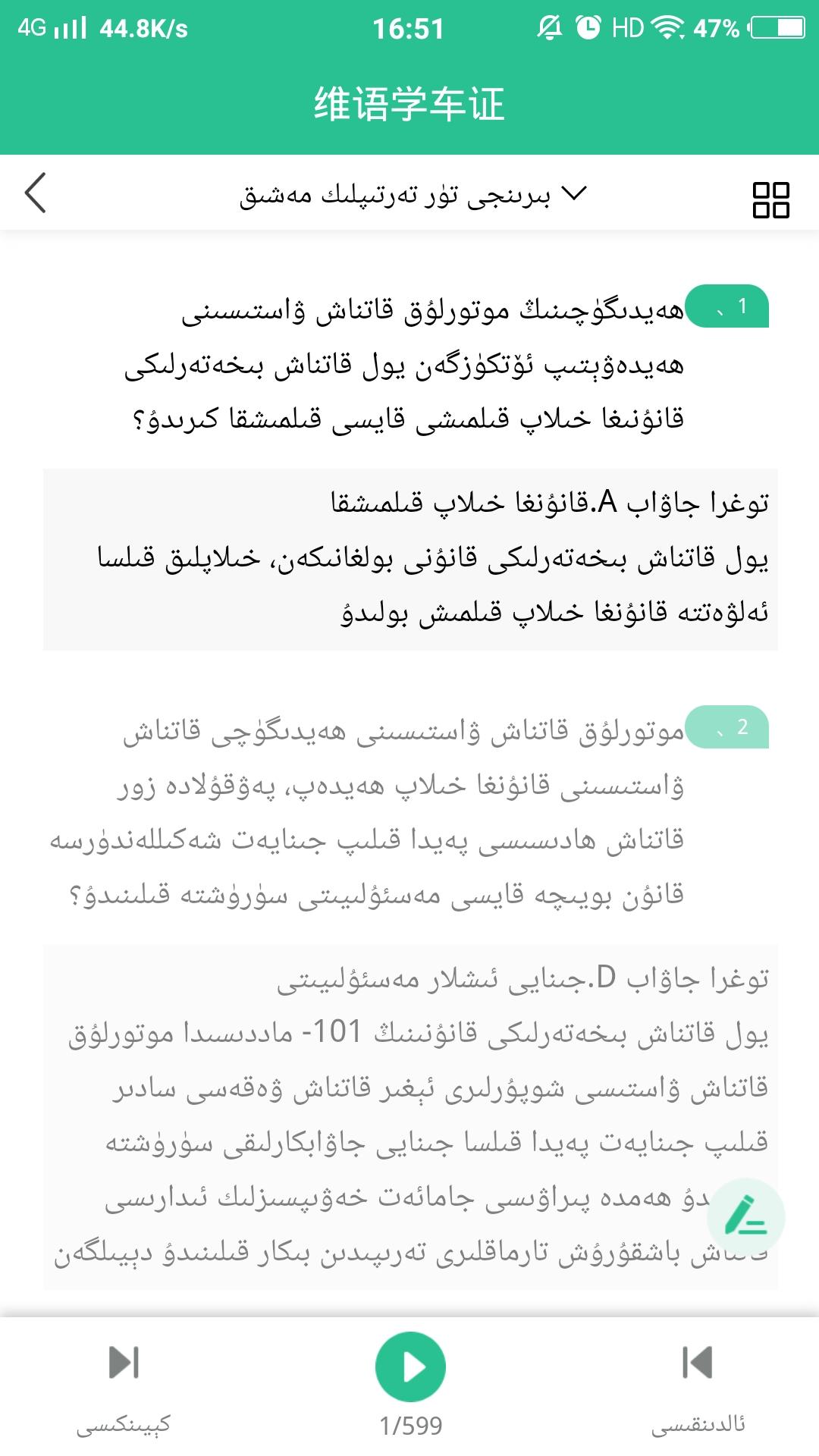 维语学车证app免费版是一款针对维吾尔族驾考用户打造学习软件,里面含有大量的维吾尔语题库,维汉双语版本,软件同步更新科目一和科目四的题库,帮你轻松通过考试,快速拿证。