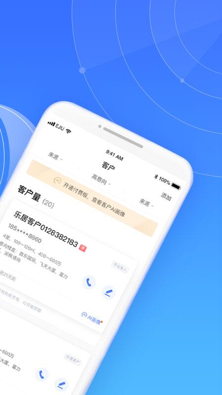 乐居来客app是一款由北京怡生乐居信息服务有限公司专为房产经纪人开发打造的客户发掘管理软件,这款软件可以帮你实时跟进客户、制作海报、推送消息等功能,让你的销售更加轻松高效。