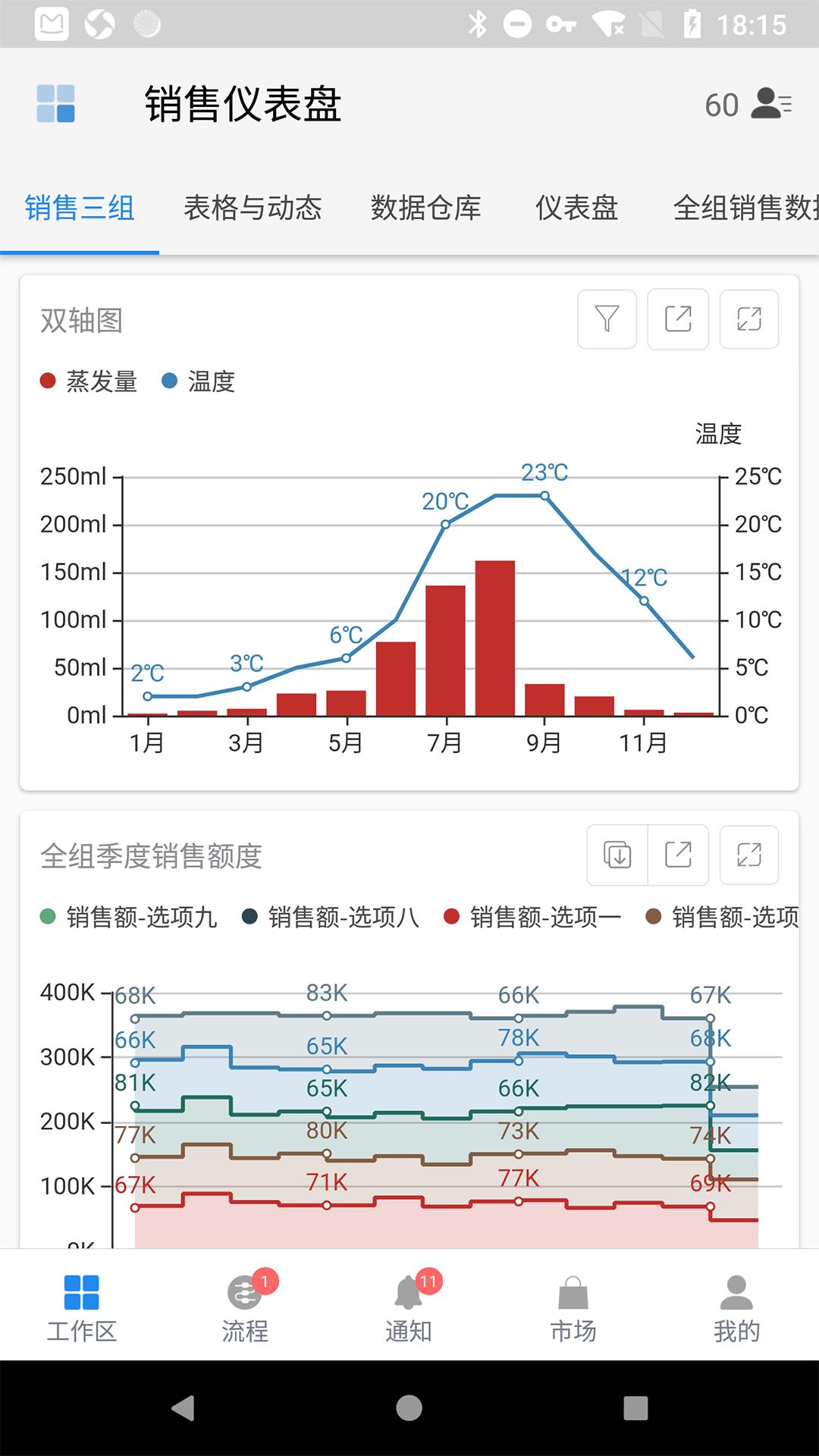【数据分析】对数据进行智能化分析,可视化呈现。可用于月度营收报表,销售曲线对比等。