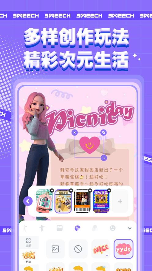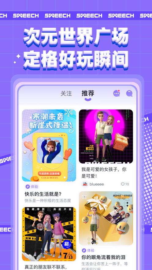 甜芝士Sweech是由上海星阑信息科技有限公司开发的一款数字孪生特色的生活社区应用。