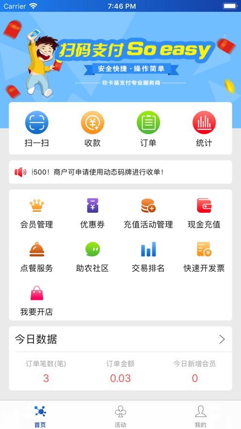 办理流程快速简便、商户激活流程简便。