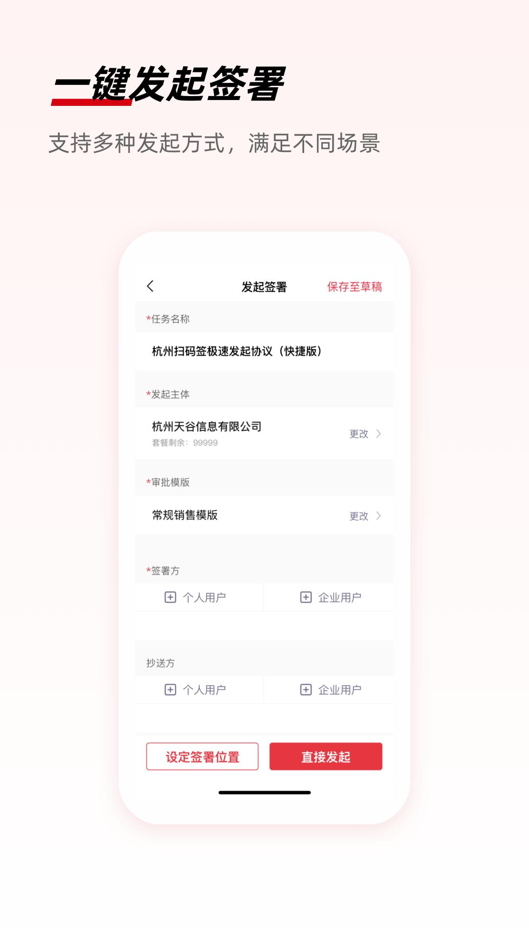 e签宝app是一款由杭州天谷信息科技有限公司开发打造的电子合同软件,简单方便的生成符合法律效力的电子文书。电子合同云端储存,方便管理,安全不怕丢失。