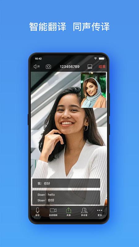 随时随地发起会议、加入会议、实时屏幕共享、文档共享、跨平台即时通讯。