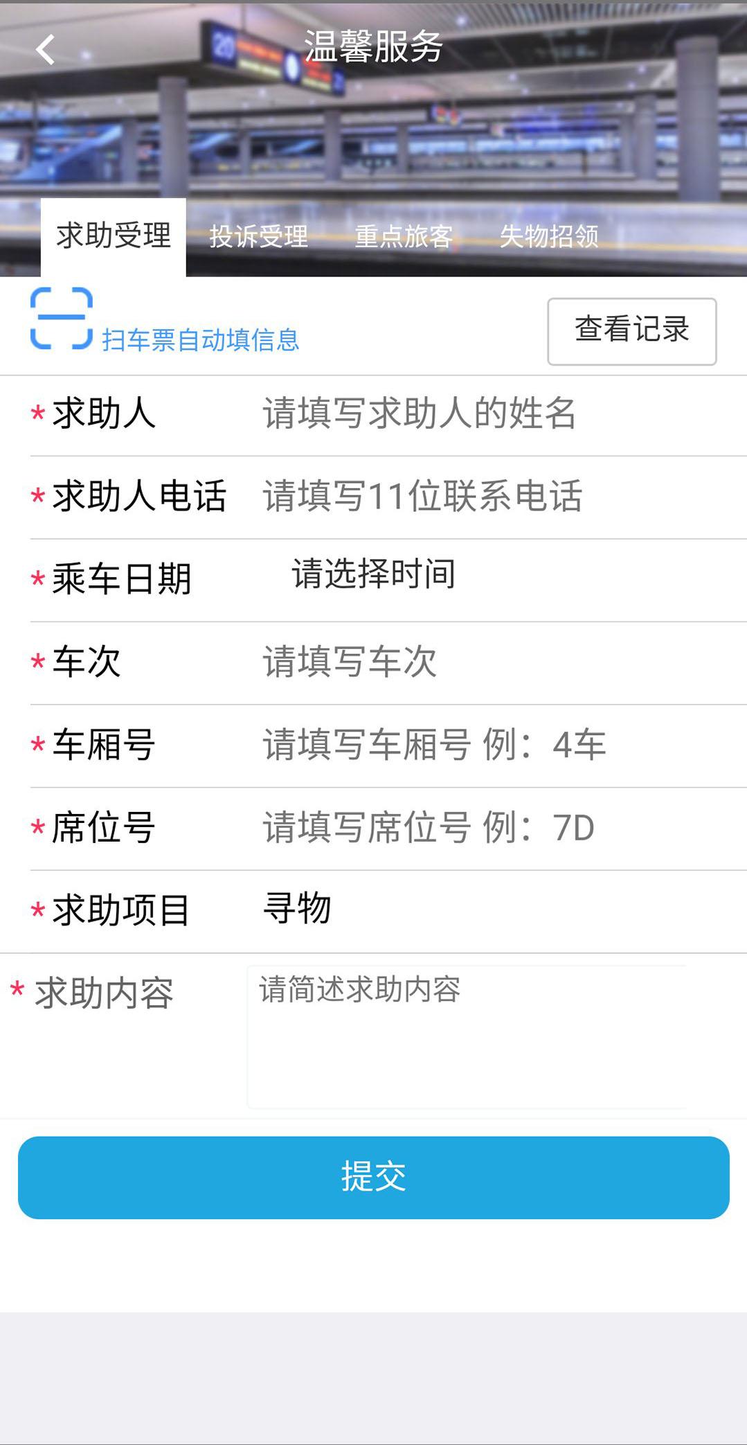 有工作证遗失补办、机车乘务员送餐、申请帮扶救助功能。