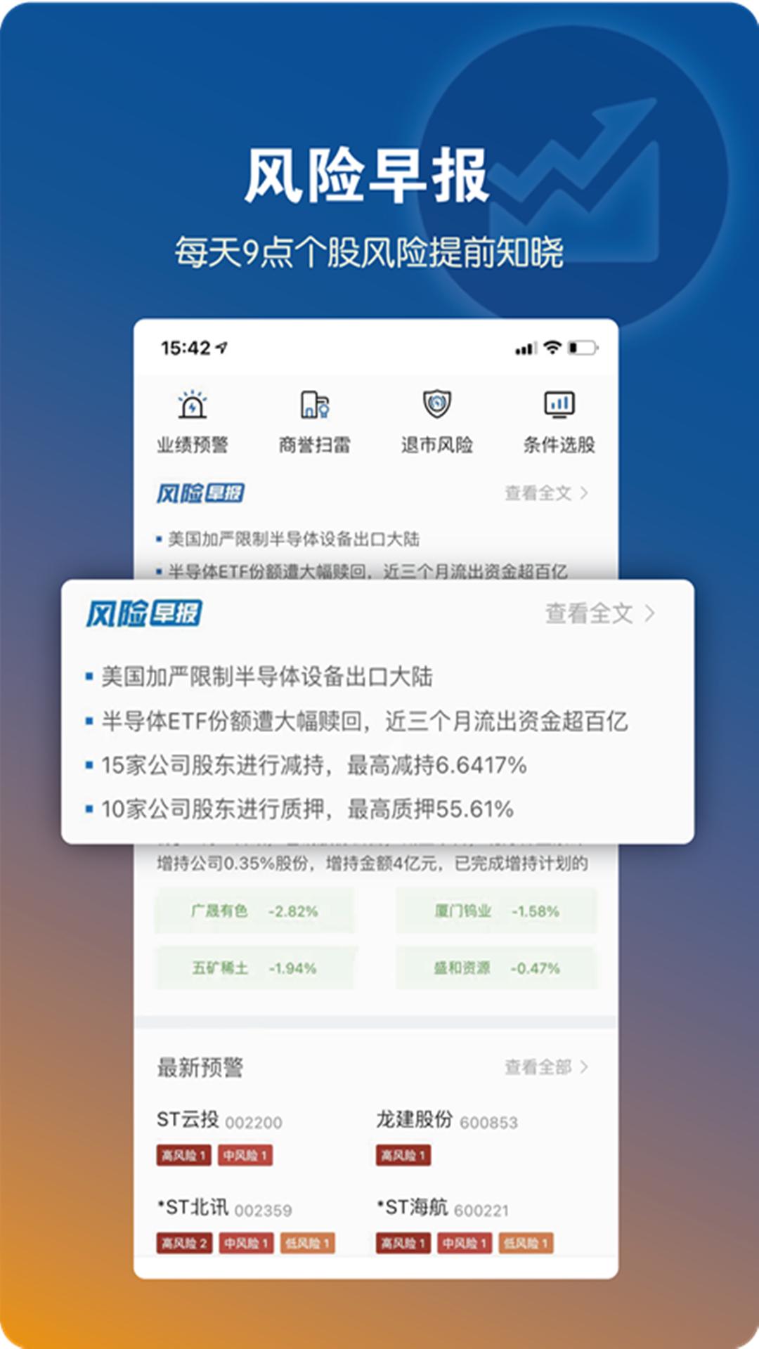 风险查一查app是一款十分不错的智能风险分析平台,它主要推出风险早报,每天9点个股风险提前知晓,7*24小时风险监控,预知投资风险,让您在做投资决策之前,降低投资风险,感兴趣的话赶紧来下载