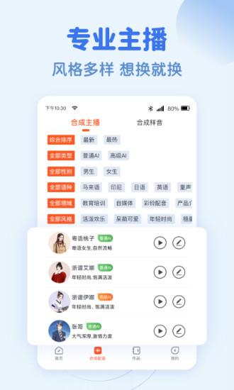 1、专业配音功能:运用了专业强大的AI配音技术,一键轻松完成专业配音,海量主播音色任你挑选;