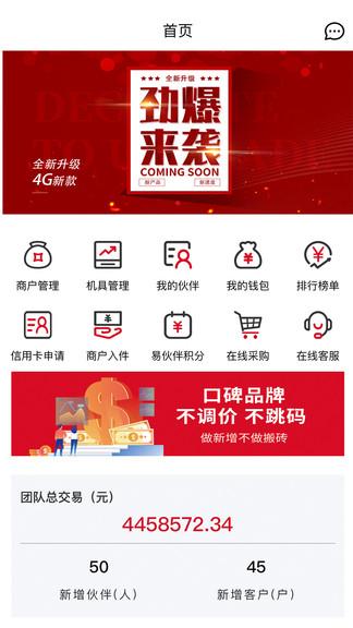【首页】:主要操作区,可实现商户管理、机具管理、信用卡申请、在线采购等主要功能。
