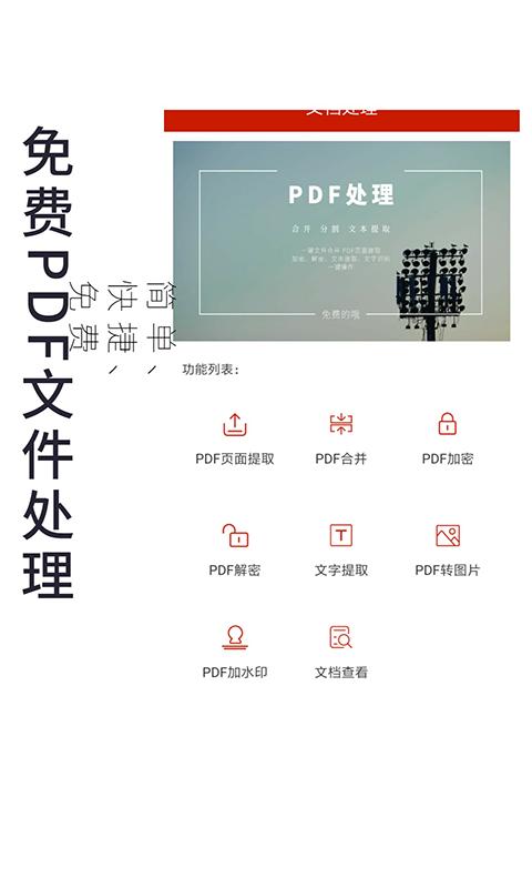 pdf处理助手去广告版是一款免费PDF文件处理,操作十分简单快捷,用户只需要一键处理即可,同时还提供各种PDF文件转换,PDF内容转为图片,多种文档格式一键预览,有需要的用户可以来下载试试看