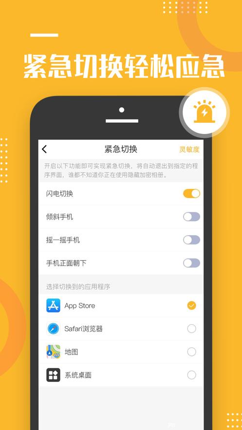 一键隐藏和一键切换,手机屏幕朝下时返回密码页让你自由掌控。