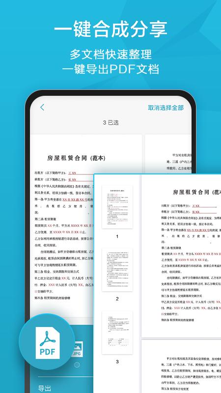- 分享快:即便扫描多页文档,也能自动合成PDF,一键发送到微信、邮件
